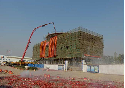 研发综合大楼在烟花爆竹声中封顶成功,热烈祝贺。