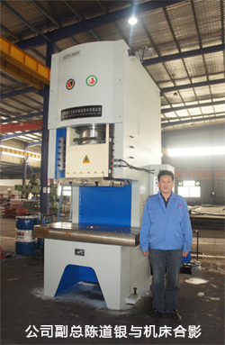 生产Y27Y-300T大型多功能液压快速压力机检验合格发往新疆图为开云官方站登录入口-开云online(中国)副总陈道银与机床合影。