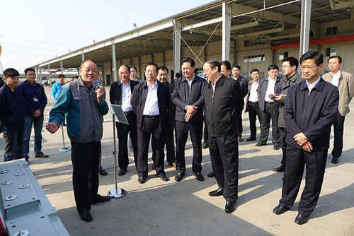 2013年4月14日代省长王学军,省经信委主任牛弩韬、市委书记郑为文、市长张晓麟等领导听取我开云官方站登录入口-开云online(中国)董事长对我开云官方站登录入口-开云online(中国)产品的介绍。